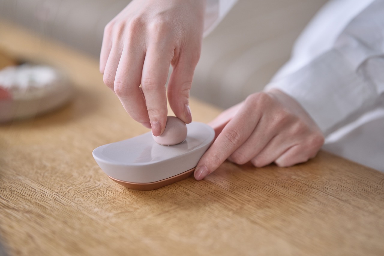 1. aroma stoneに付着しているアロマオイルをティッシュなどで拭き取ります。
